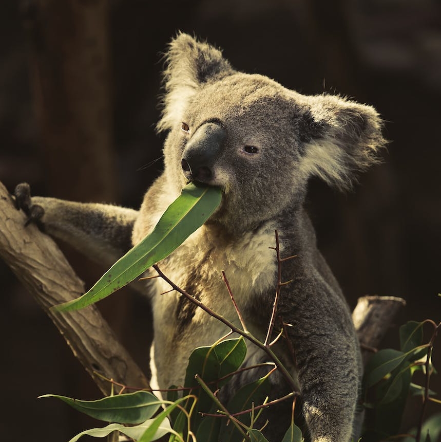 कोआला विशेष रूप से शाकाहारी हैं और विशेष रूप से नीलगिरी के पत्तों को खाने में माहिर हैं। उनके आहार में यूकेलिप्टस की 600 से अधिक प्रजातियाँ शामिल हैं, लेकिन वे मुख्य रूप से लगभग 30 विभिन्न प्रजातियों का उपभोग करते हैं।